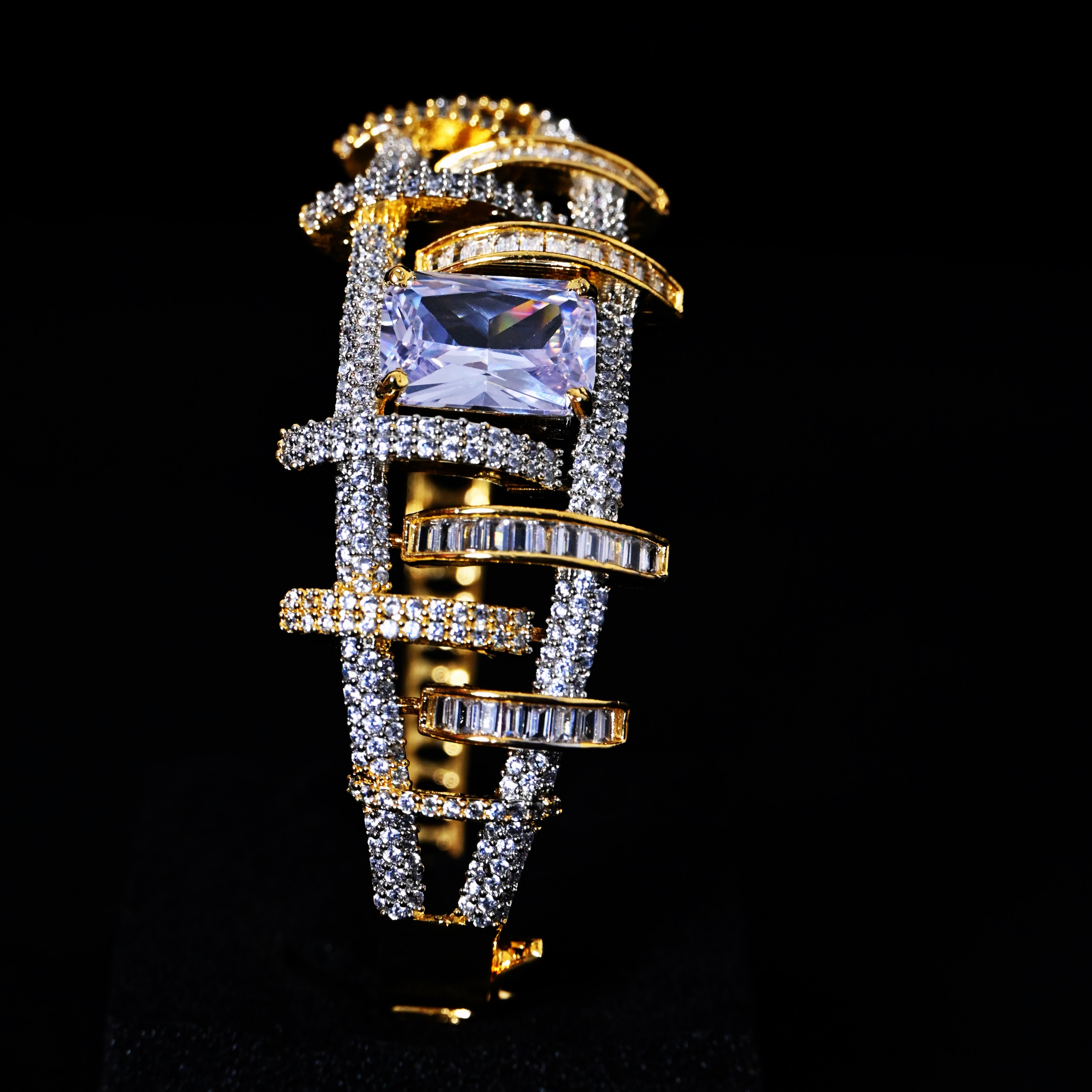 Elegant cross style pattern bracelet featuring a unique hammered texture and contemporary styling for a sophisticated statement piece