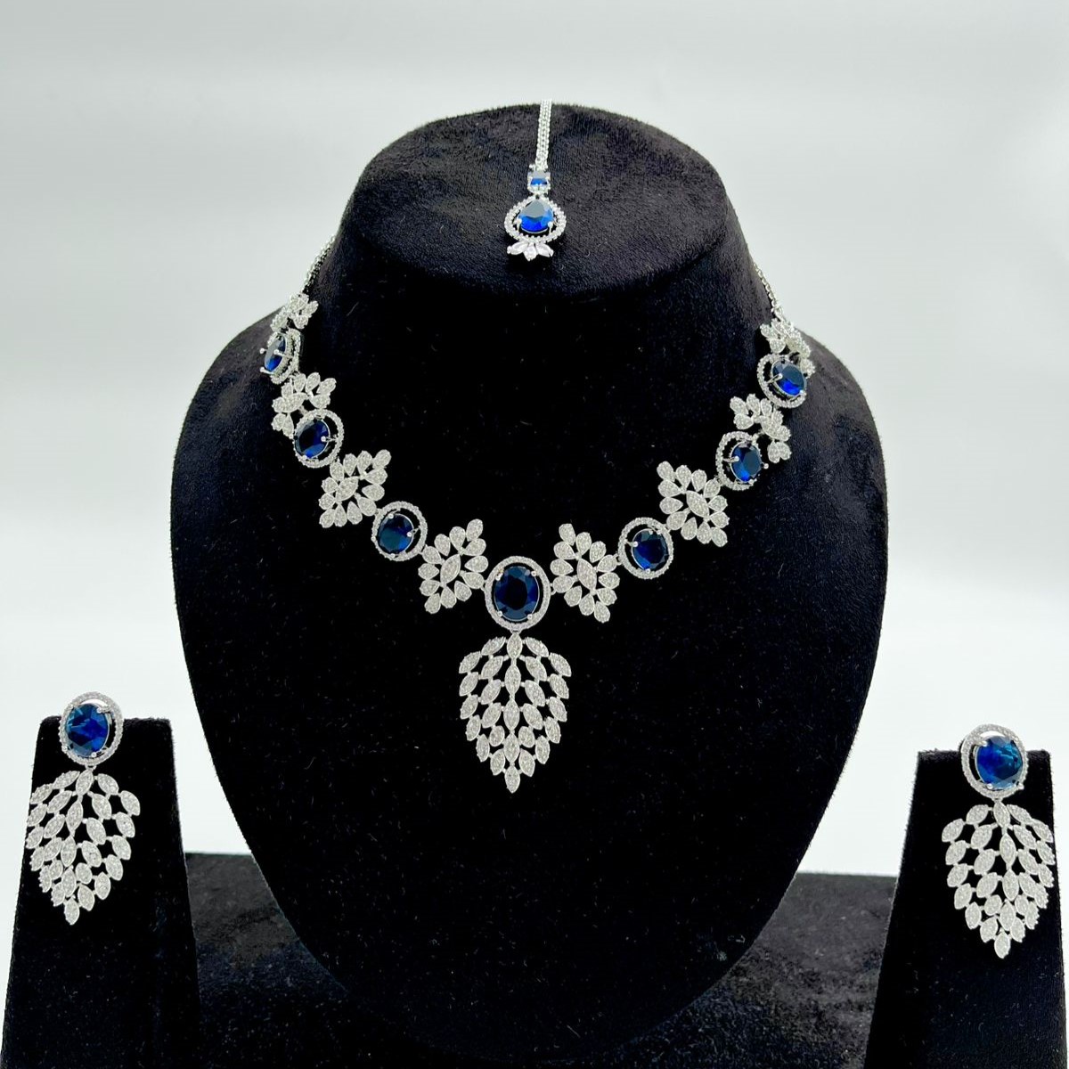This jewellery set consists of a necklace and a pair of earrings. Rhodium-Plated Silver Toned Choker Necklace, has American Diamond studded detail, secured with a S-Hook closure. A pair of matching bold Earrings, each secured with a Post and Back Closure.