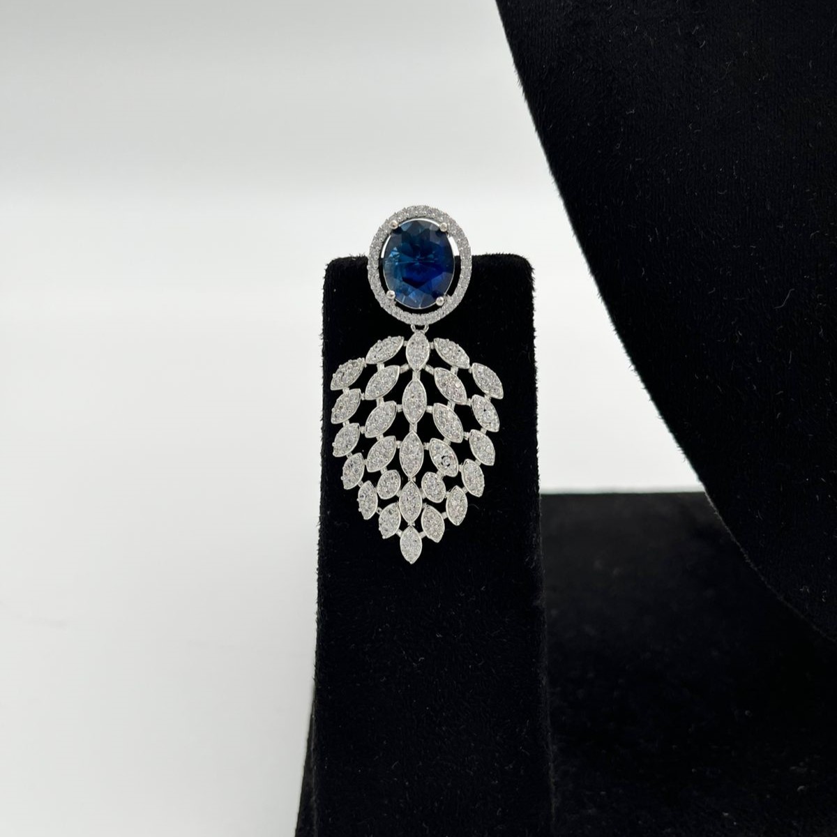 Matching earrings complement the necklace, mirroring the design with red wine-colored stones framed by dazzling diamonds.
